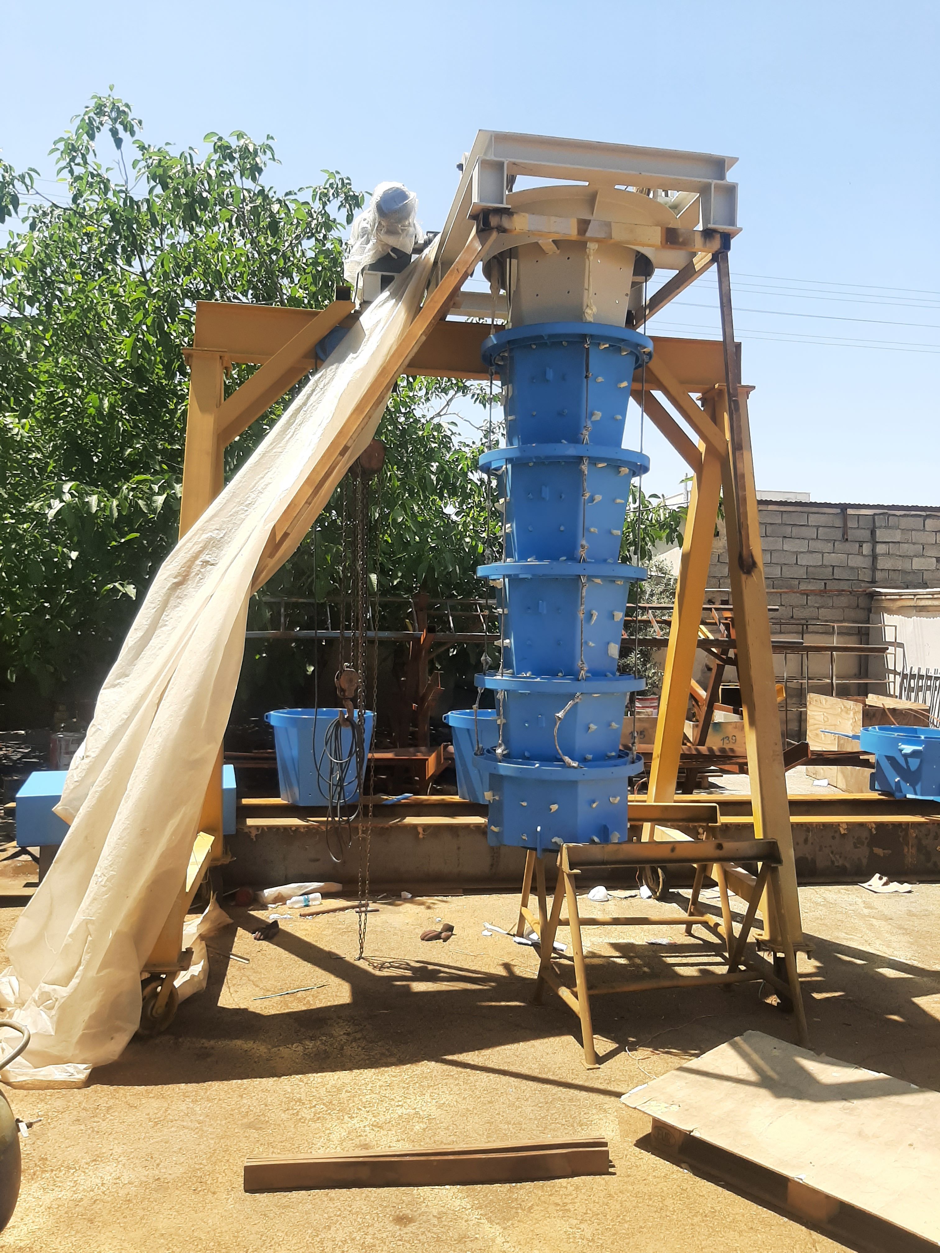 طراحی و ساخت یک دستگاه شوت تلسکوپی با شاسی پایه دار و طول کورس 1500 میلیمتر با ظرفیت دبی 80 تن بر ساعت جهت بارگیری تراک