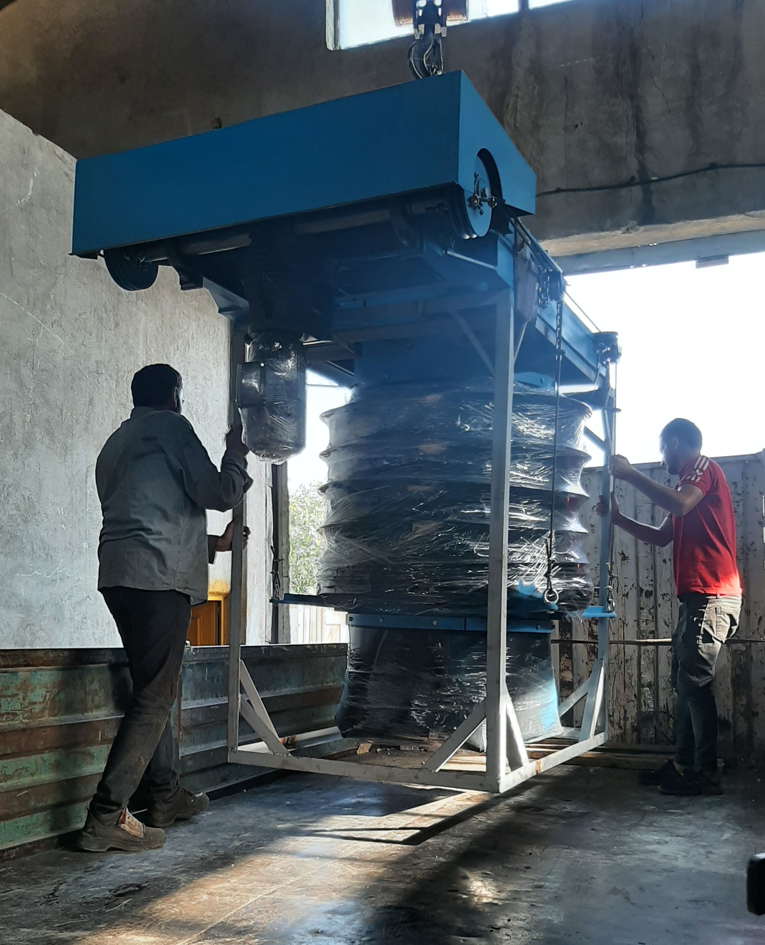 دستگاه بصورت اسمبل شده و آماده کار در بسته بندی مناسب و سازه قابل حمل پکینگ شده و به سایت کارفرما ارسال گردید.