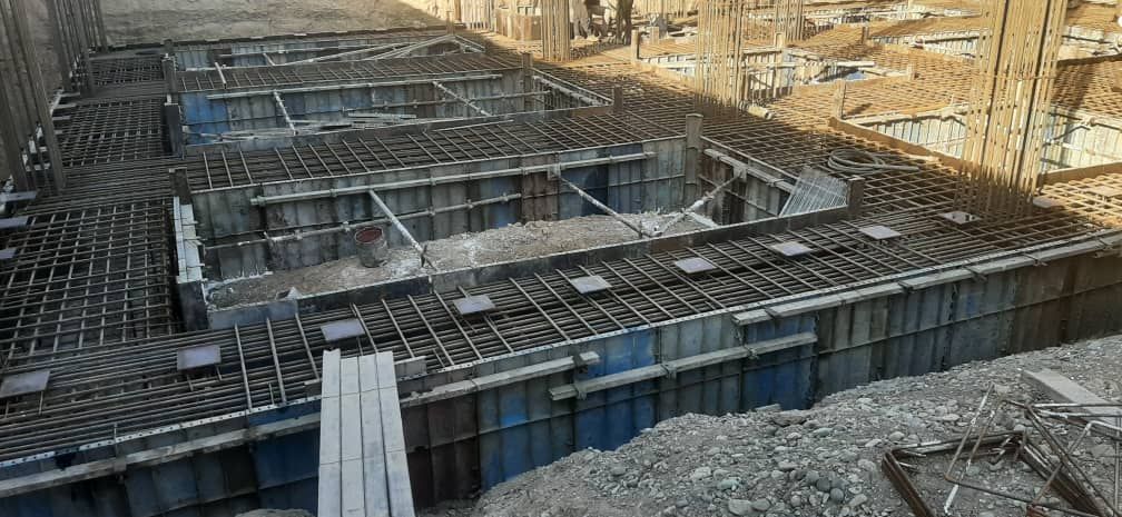 آرماتوربندی، بتن ریزی و اجرای فوندانسیون و سقف تیرچه یونولیت ساختمان 5 طبقه به مساحت 2000 متر مربع